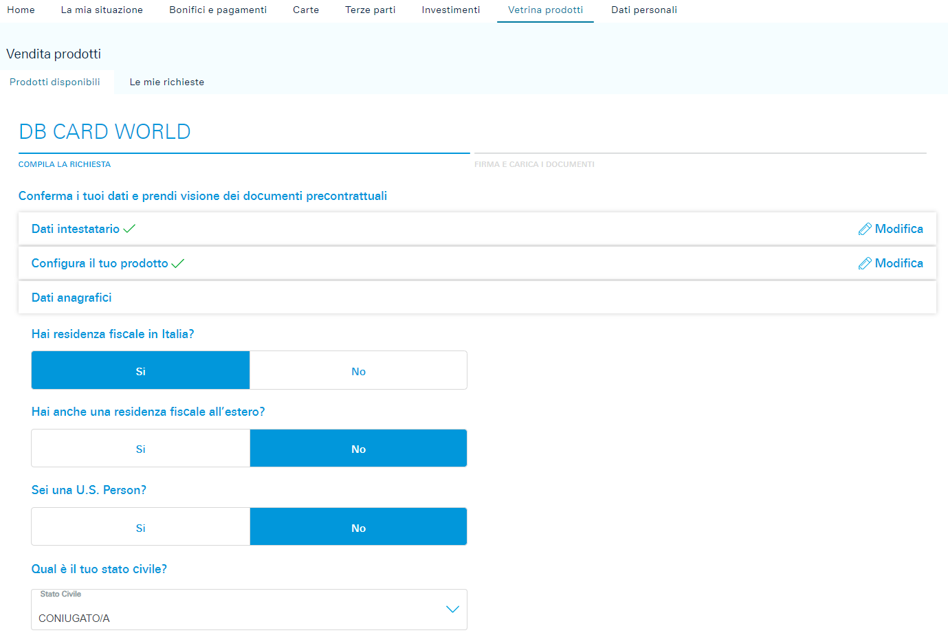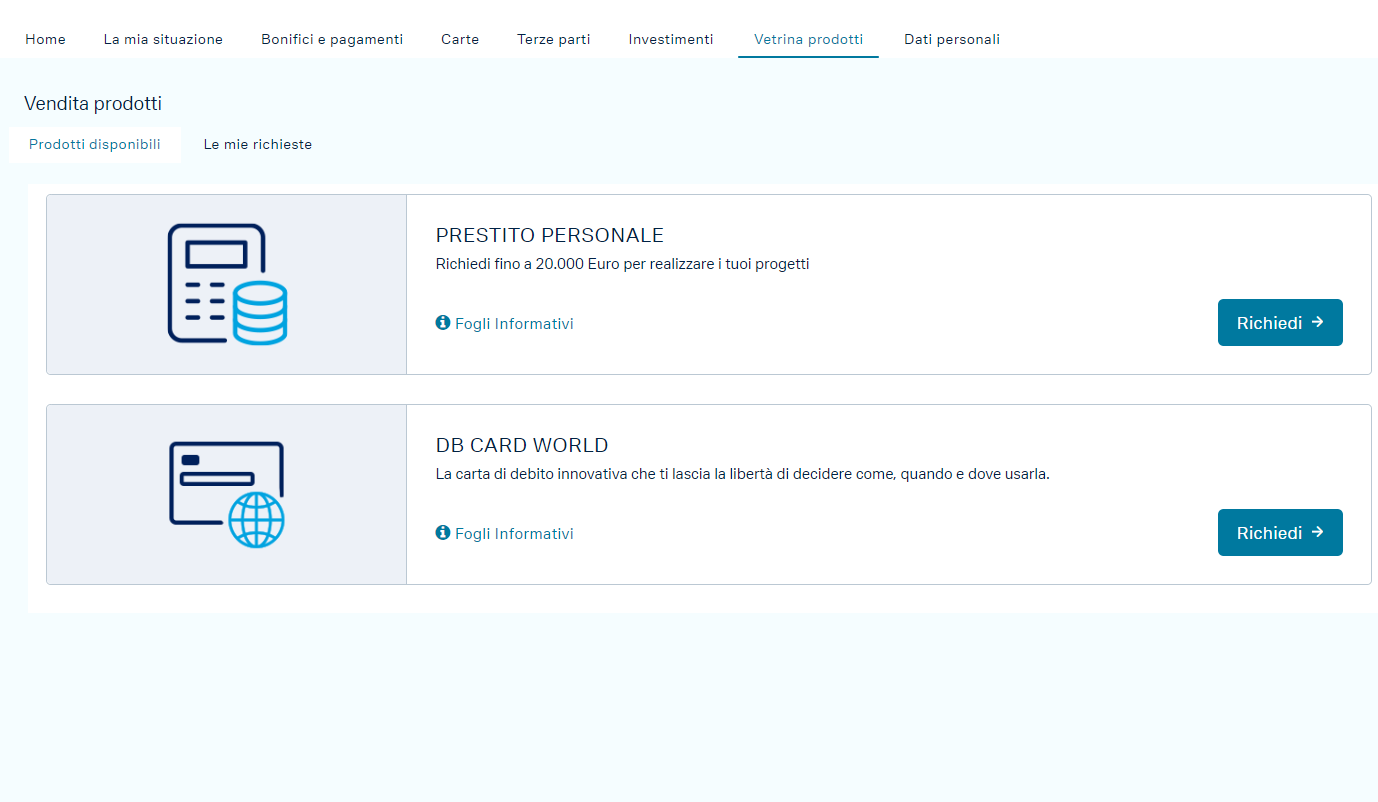 Se sei cliente Deutsche Bank, puoi richiedere la carta di debito internazionale "db Card World" attraverso il sito "La Mia Banca."