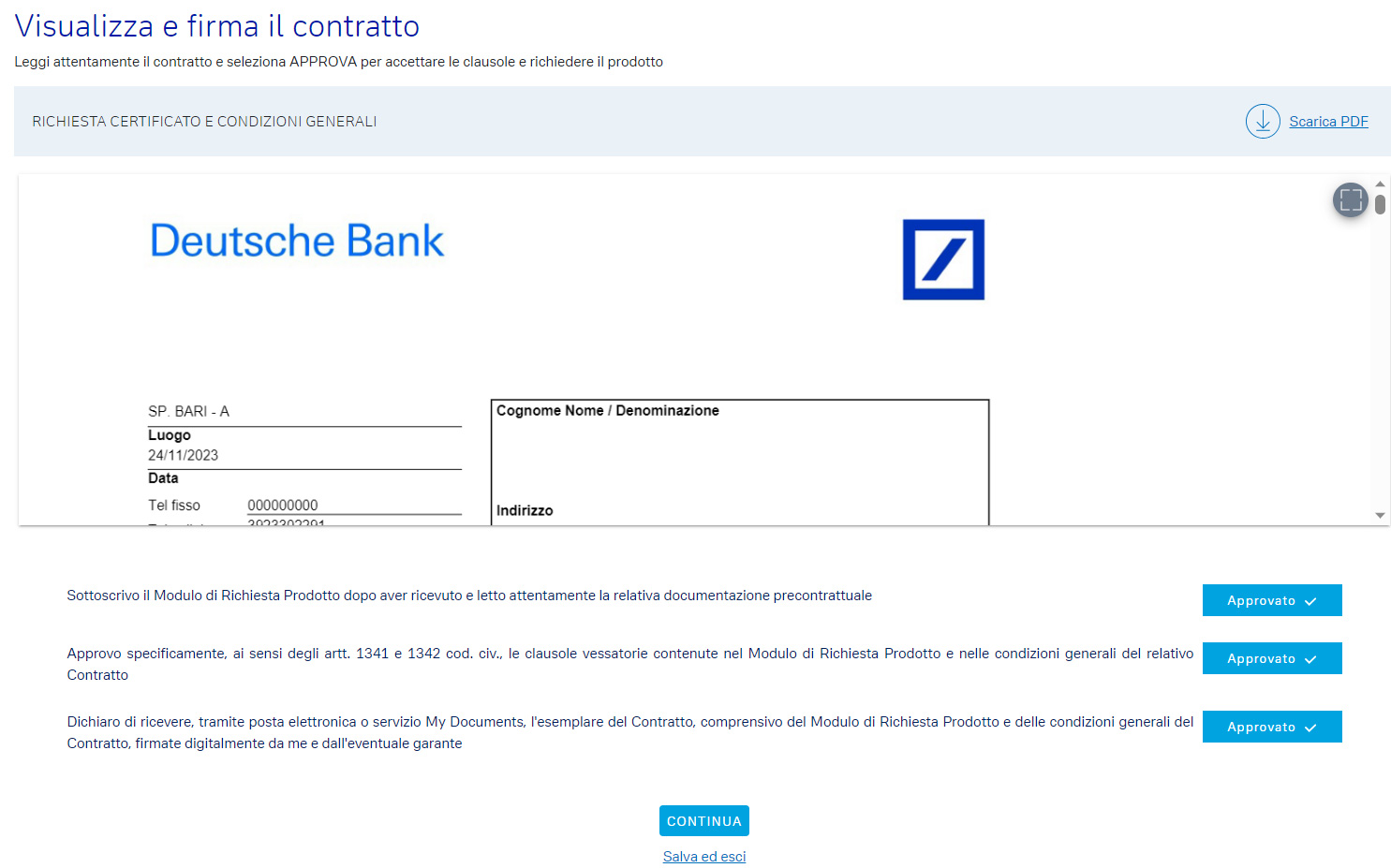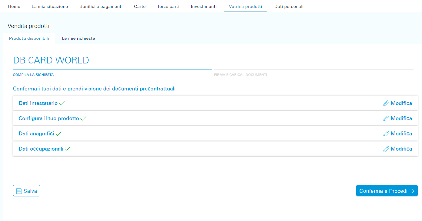 Anche se la richiesta viene interrotta, puoi facilmente riprenderla e completarla in qualsiasi momento dalla voce ‘Le Mie Richieste’ della Vetrina Prodotti.