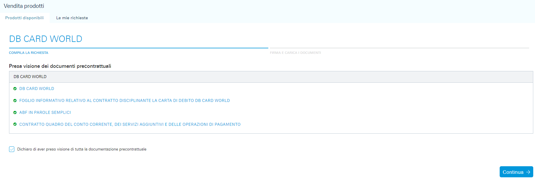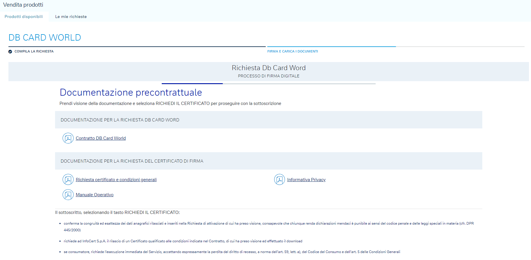 Il processo è semplice e può essere completato con pochi click seguendo la procedura guidata all'interno della sezione ‘Vetrina prodotti - Prodotti Disponibili’.